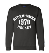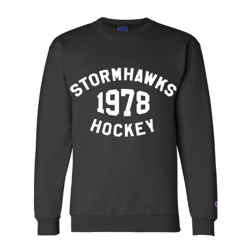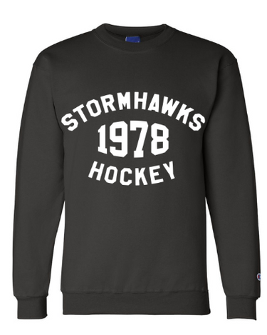 This black & white vintage reissue sweatshirt is exclusive to STAKD for Stormhawk athletes and families to show their pride with our classic fleece hoodie with our custom 1978 graphic on the front chest.