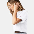 Champion Women's Heritage Jersey Crop Short Sleeve Tee features a crew neck, classic fit, with a cropped length.